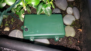 Her er den lille batteriboksen som jeg har lagt litt skjult i potta. Fiffig ikke sant?